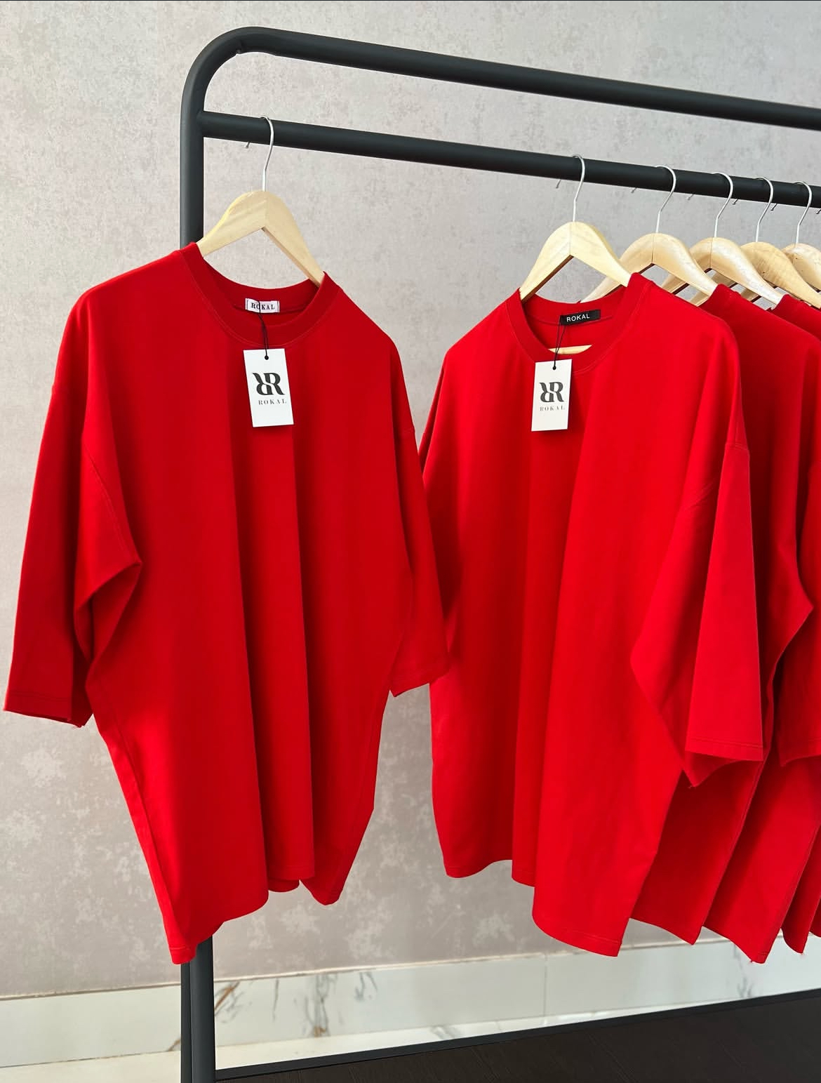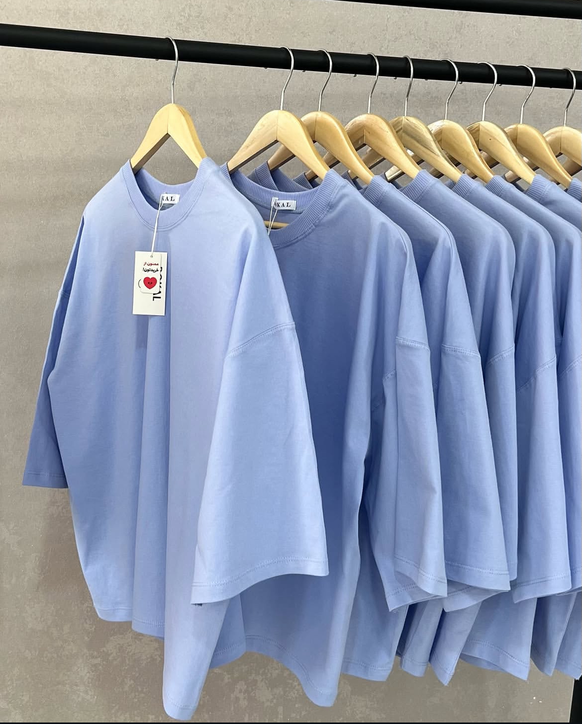 تیشرت باکسی بیسیک (ساده) نخ پنبه بدون ابرفت و رنگ دهی یقه گرد مناسب استفاده ست کاپلی و پسرانه و دخترانه قد ۶۸ عرض سینه ۱۲۷